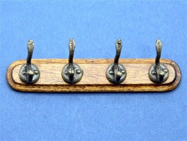 4 Coat Hooks On A Walnut Bar, Dolls House Miniature Fixtures, 1.12th Scale DIY