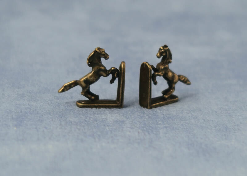 Antique Horse Bookends, Dolls House Miniature, Books, Study Shelf