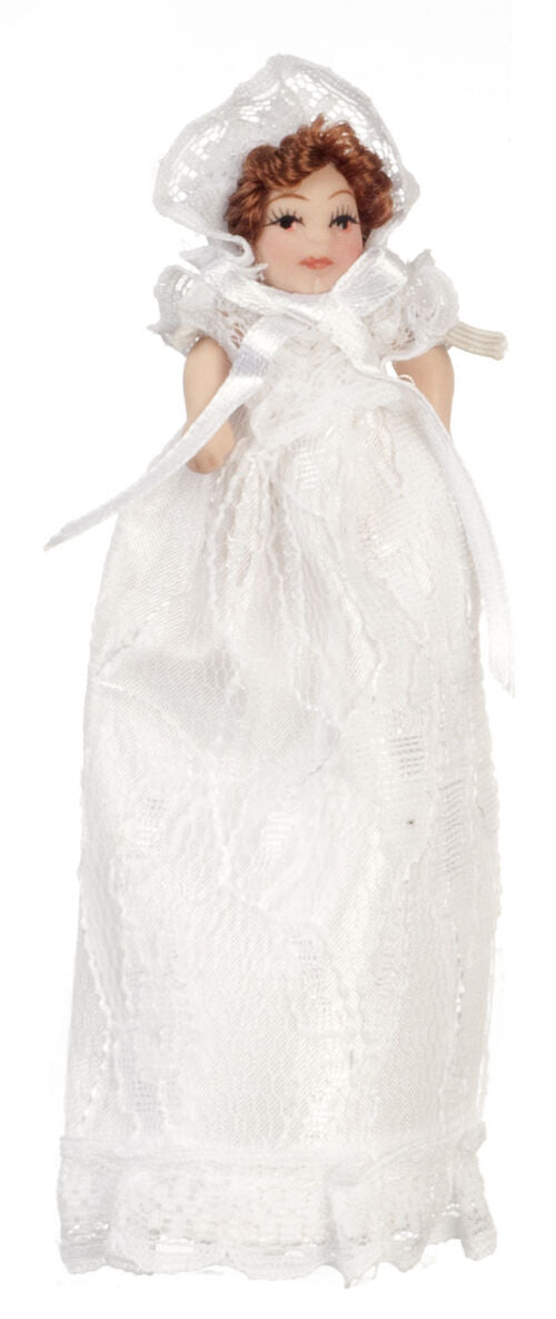 Country Baby, Miniature Doll 1.12 Scale Baby Girl In Gown. Dollhouse Miniature