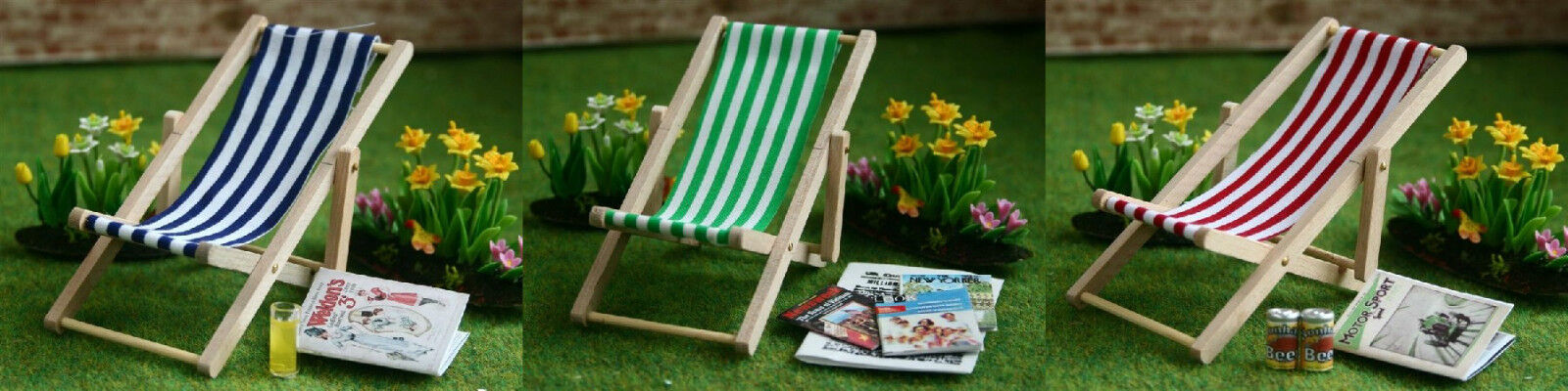 Folding Deck Chair Choice Of Colours, Dolls House Miniatures, 1.12 Scale