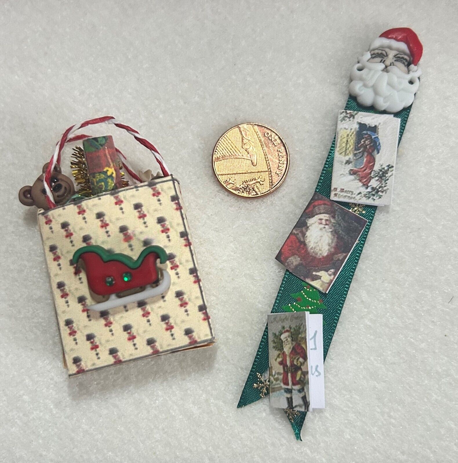 Handmade Christmas Bag & Card Display, Doll House Miniatures, Xmas 1.12th