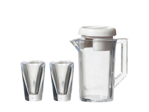 Jug With Lid & Two Glasses, Dolls House Miniature, 1.12th Scale, Drink, Kitchen
