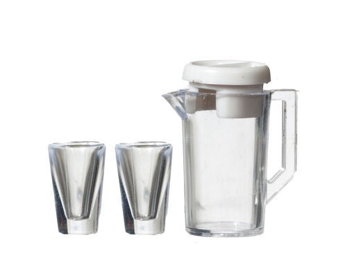 Plastic Jug With White Lid & Two GlassesApprox. Jug Height- 23mm, Glass Height- 12mm.1.12 ScaleDolls House GalleryHello,Welcome to our eBay Listing.All our items are brand new 1/12th and 1/24th scale miniatures for use by adult,