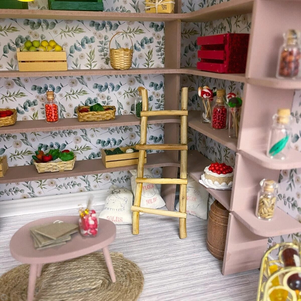 Old Ladder Wooden, Dolls House Miniature 1/12 Scale, Hobbit, Gnome Rickety