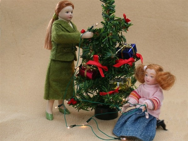 String of 12 x 3mm White Lights Christmas stringRequires a 12 Volt power source (Not Included)Dolls and tree not included
