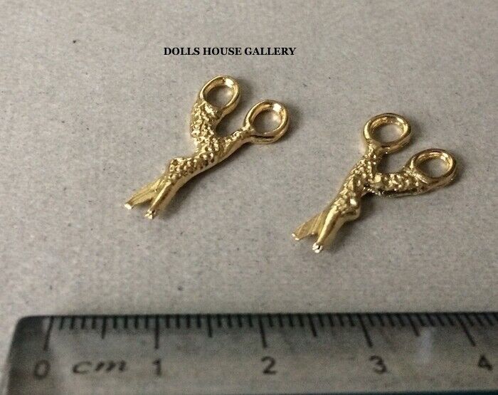Two Gold Scissors, Dolls House Miniatures, Accessories 1.12 Scale Sewing Room