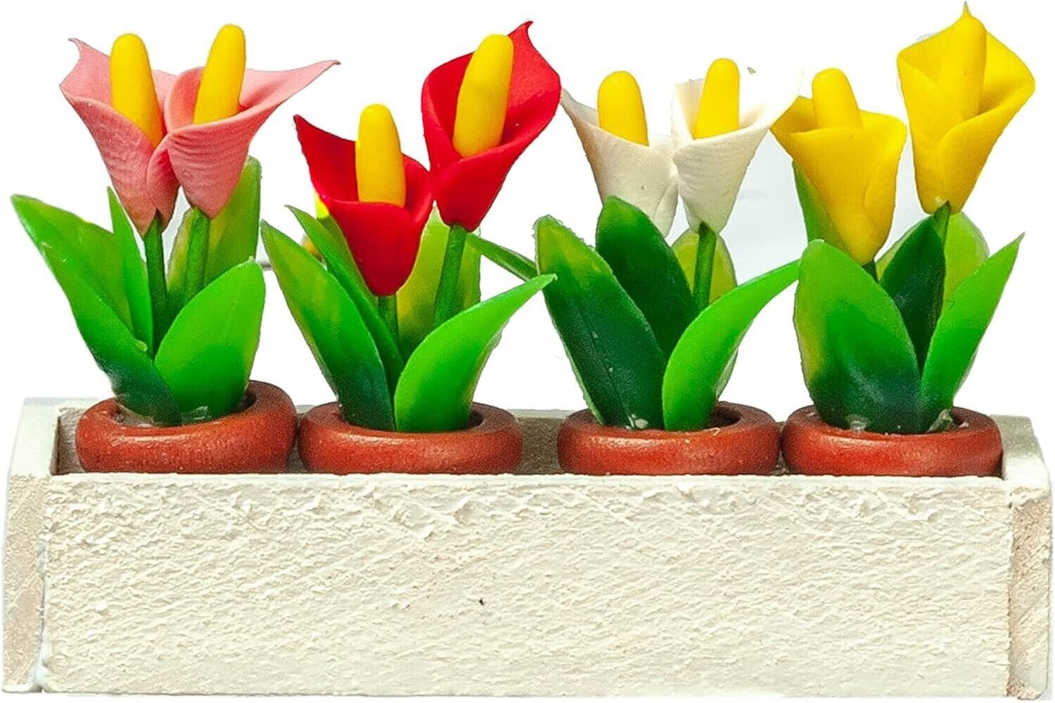 White Window Box With Lillies Flowers, Dolls House Miniature 1.12 Scale, Garden